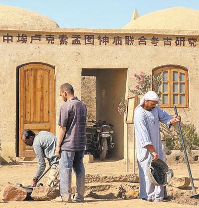 中埃(及)卢克索孟图神庙联合考古项目在考古发掘、文物保护等方面,不断统一技术标准,互学互鉴理念方法,推动神庙实地景象和出土文物重现于世人面前。图为工作人员在项目现场进行发掘清理工作。