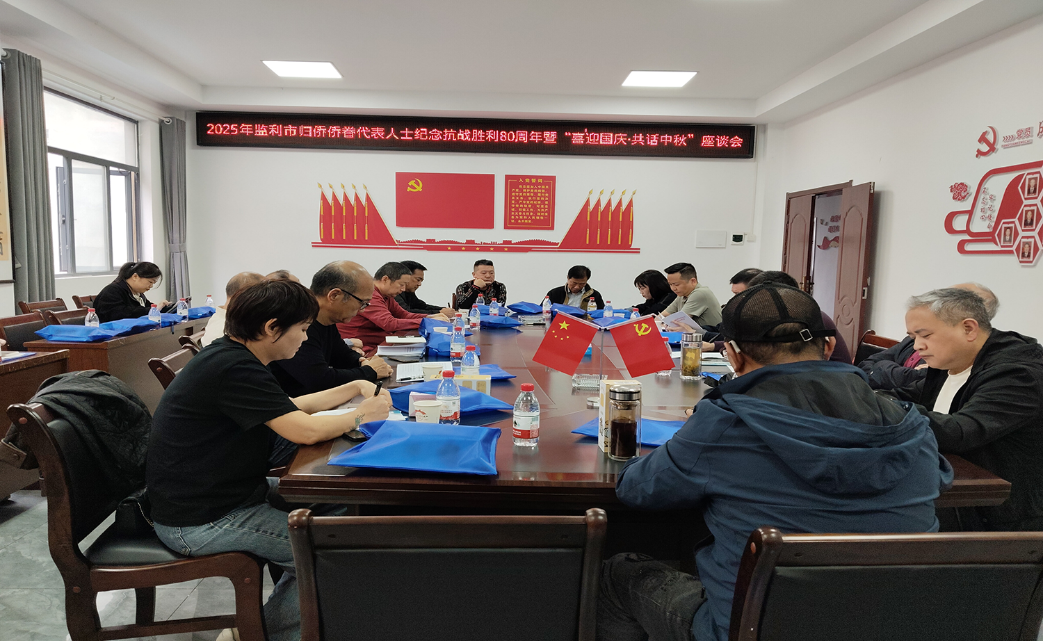 在七根檀社区“侨胞之家”召开的座谈联谊会上,学习传达了习近平总书记在纪念中国人民抗日战争暨世界反法西斯战争胜利80周年大会上的重要讲话精神以及省委书记王忠林同志在荆州调研时的讲话精神,并对湖北省实施《中华人民共和国归侨侨眷权益保护法》办法进行重点解读;四位侨界代表就观看9.3阅兵向大家分享了心得体会,纷纷表示观看9.3阅兵是一次沉浸式的爱国主义教育,深刻认识到抗战胜利的来之不易和民族精神的伟大力量,抗战精神将激励着大家不断向前、不断奋斗。随后,丁鹏向参加活动的各位代表人士及其远在他乡的亲属送上了最真挚的节日祝福;针对如何做好今后的侨务工作,与会人员纷纷建言献策,提出了工作建议。
