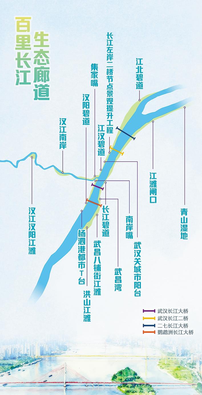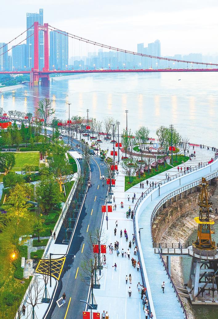 从汉口江滩的繁华起步,经杨泗港的活力迸发,过武昌湾的文化传承,历洪山江滩的野趣悠然,至南岸嘴的战略留白……百里长江生态廊道在这个黄金周首次画圆。
