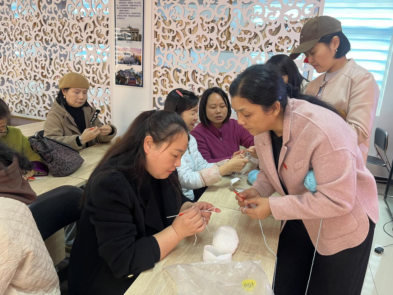 活动现场洋溢着温馨与欢乐的气氛。各色柔软的毛线在指尖缠绕,勾画出温暖的图景。编织经验丰富的朱小红老师耐心地从最基础的钩针手法开始,手把手地进行指导。学员们学习热情高涨,认真聆听,积极动手实践,不时相互交流,分享自己编织出的新颖花样。每当遇到难题,朱老师便来到身边细致讲解,大家在其乐融融的氛围中,不仅掌握了编织技巧,更增进了彼此的情谊。