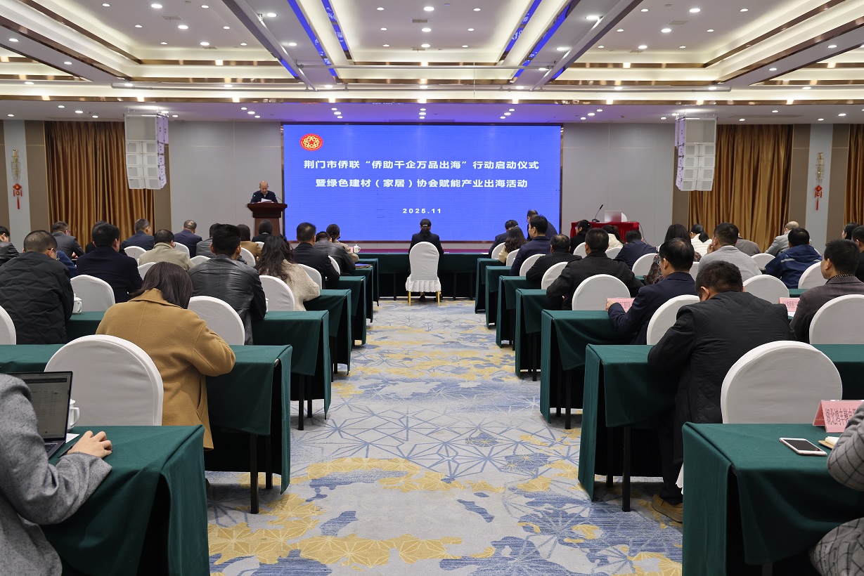 (楼青峰)11月12日,荆门市侨联“侨助千企万品出海”行动启动活动举行。市委常委、市委统战部部长唐承凤出席活动并讲话,市政协副主席、市侨联主席、民进市委会主委高奎军主持活动。市侨联党组书记孙江红,市商务局党组书记周方明,市工商联主席彭艳,东宝区委书记、区长董勇,东宝区委常委、区委统战部部长张再平参加活动。全市企业代表及各县(市、区)侨联负责人100余人参加。