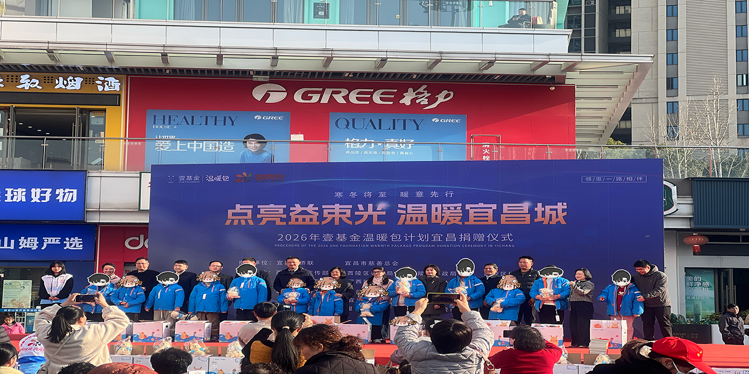 (付琳琳)1月11日下午,由宜昌市侨联、市慈善总会指导,西陵区窑湾街道办事处、宜昌吾悦广场、宜昌市益束光志愿服务中心联合承办的“点亮益束光 温暖宜昌城”2026年壹基金温暖包计划宜昌捐赠仪式在宜昌市西陵区吾悦广场举行。活动为123名困难学生送上御寒及学习物资,以公益善举续写宜昌“志愿之城”文明华章。