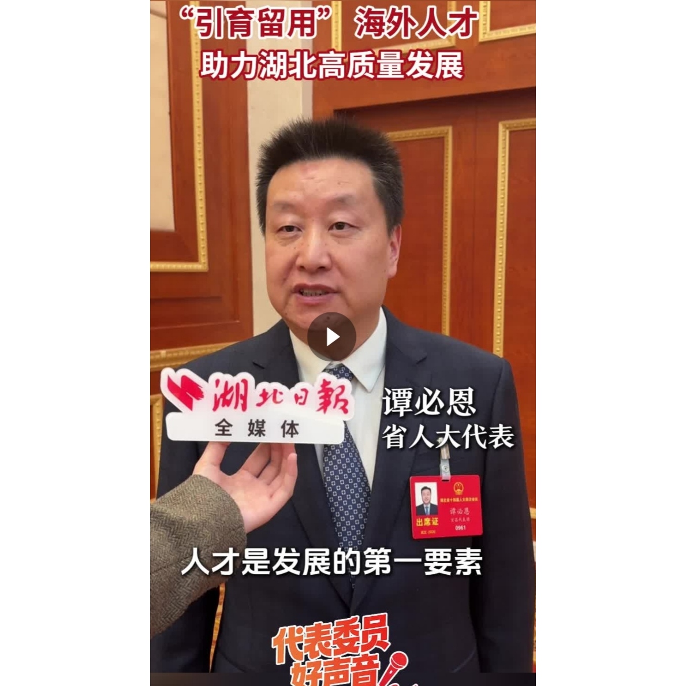 省人大代表、华中科技大学侨联主席谭必恩锚定人才强省战略,呼吁加快构建海外人才引育留用服务体系,让湖北成为海外英才逐梦高地。