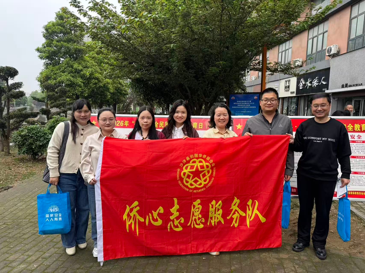 (雷珊)2026年4月15日是第九个全民国家安全教育日。为深入贯彻落实总体国家安全观,增强广大侨界群众和市民的国家安全意识和法治观念,4月15日上午9时,沙洋县侨联组织侨心志愿服务队,参加在金水湾门口开展的国家安全法律法规现场宣传活动。