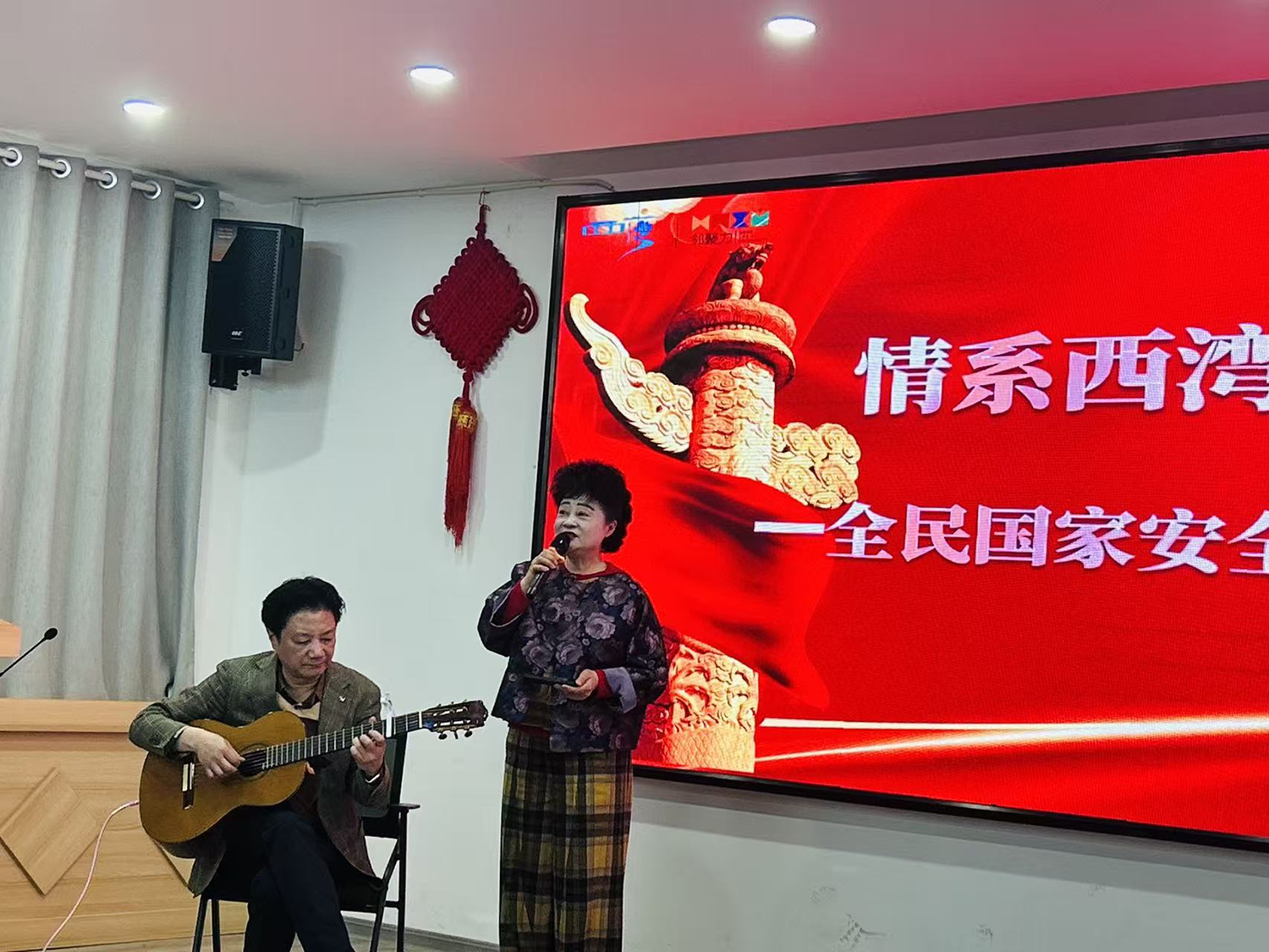 活动现场,西湾社区党支部书记龙江波紧扣国家安全核心内容,围绕政治安全、网络安全、海外利益保护等重点领域,结合侨界群众实际需求,以专题宣讲和案例剖析相结合的方式,生动讲解了公民在维护国家安全中的责任与义务。针对侨界群众普遍关心的海外安全风险防范、个人信息保护等问题,进行了细致解答。在互动环节,大家踊跃参与,现场气氛热烈,侨眷代表孙阿姨夫妇主动登台,即兴带来吉他弹唱表演。悠扬的旋律萦绕现场,饱含深情的歌声传递着侨胞心系家国、眷恋故土的赤子之心,生动诠释了“侨心向党、同心护国安”的赤诚担当,赢得在场群众热烈掌声。