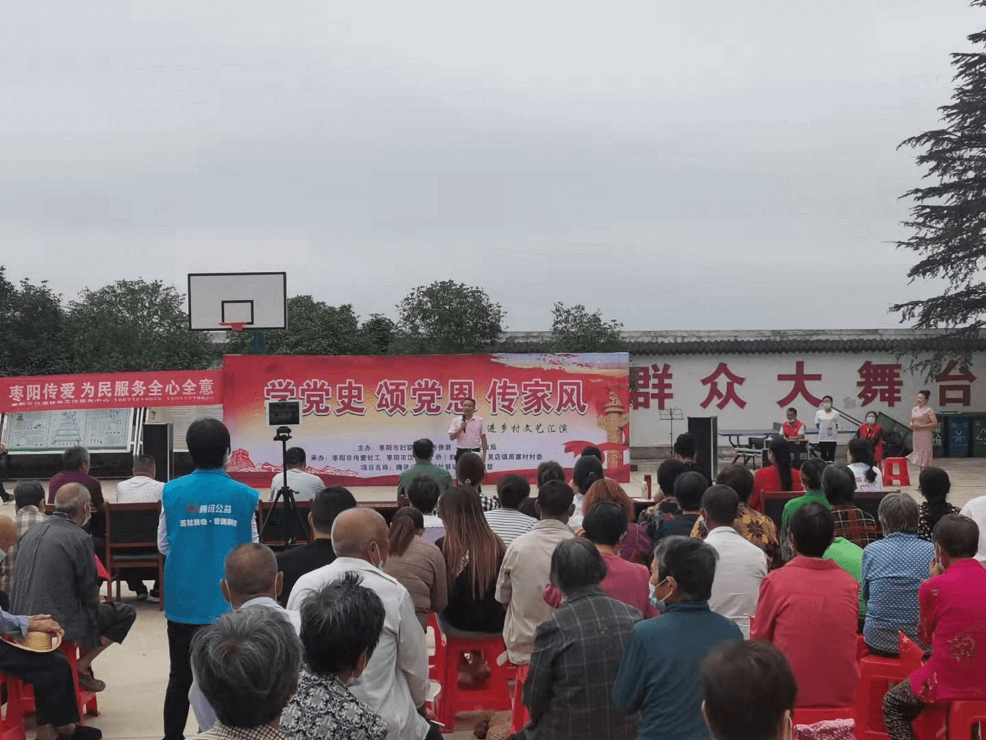 (枣阳市侨联李红丽)9月26日,由枣阳市侨联、枣阳市妇联联合主办,枣阳市汉城“侨之家”、汉风侨韵旗袍协会、传爱社会工作服务中心承办的“学党史·颂党恩·传家风——进乡村文艺汇演”活动在吴店镇周寨村举行,近300名村民参加观看。枣阳市侨联党组书记、主席祁吉锋出席活动并致辞。
