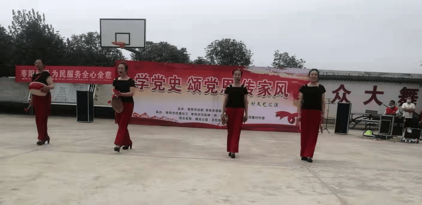 枣阳市汉风侨韵旗袍协会的佳丽们先后表演了旗袍团扇《中国茶》、舞蹈《红星歌》、女声小合唱《我和我的祖国》等10个文艺节目,为当地村民送上一场丰富多彩的精神文化大餐。