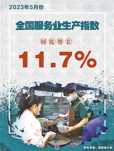 随着经济社会全面恢复常态化运行,服务需求持续释放,带动服务业增长。5月,服务业生产指数同比增长11.7%,保持较快增长。加上5月假期效应带动及上年基数较低的影响,接触型服务业增长较快。5月,住宿和餐饮业生产指数同比增长39.5%。