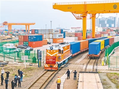 日前,一列装载着书画、瓷器等中法文化交流艺术品的“义新欧”中欧班列从浙江义乌启程,开往法国巴黎。楼冀阳摄(影像中国)