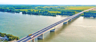 由中国企业承建的塞尔维亚贝尔格莱德泽蒙—博尔察大桥(普平大桥)。李杰摄