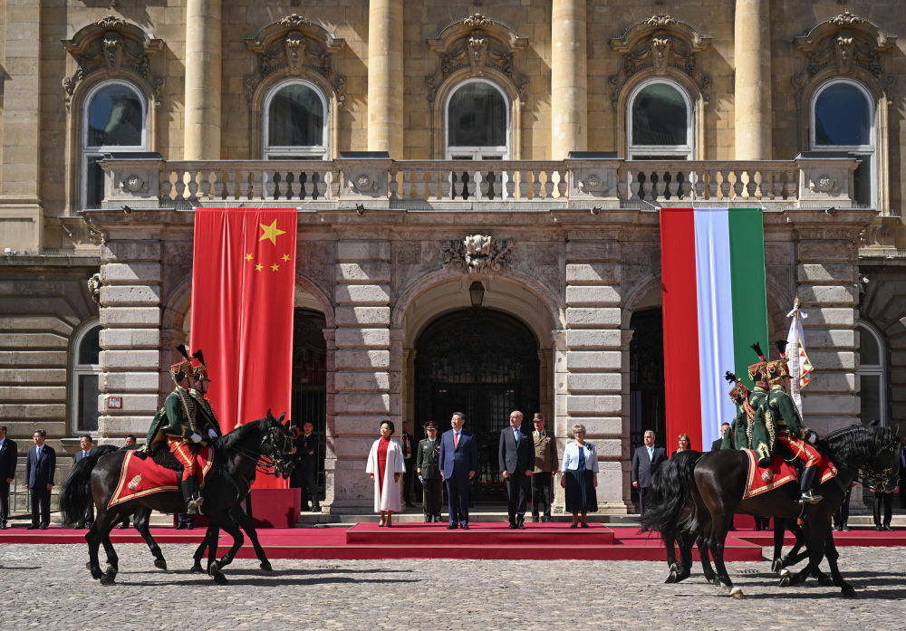 当地时间5月9日,习近平主席在布达佩斯出席匈牙利总统舒尤克和总理欧尔班共同举行的隆重欢迎仪式。新华社记者谢环驰摄