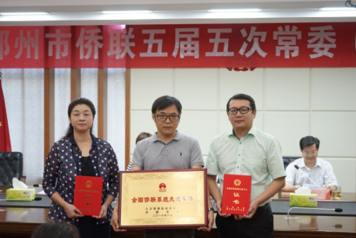 会上宣读了中国侨联、国务院侨务办公室表彰决定,胡晓军同志接受颁发了的全国归侨侨眷先进个人荣誉证书。
