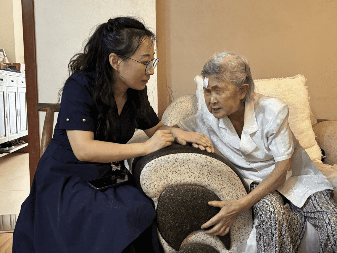 丁士秀老人是一名困难侨眷,年老体弱且双目失明,走访小组一行来到老人家中,细心询问了老人的身体状况和家庭成员情况。谢露再三叮嘱老人一定要照顾好自己的身体,同时还主动留下了联系方式,并表示侨联组织就是侨眷们的娘家,不论任何时候、任何需要,只要侨眷们有需要,侨联组织都会竭尽全力给予帮助与照顾。