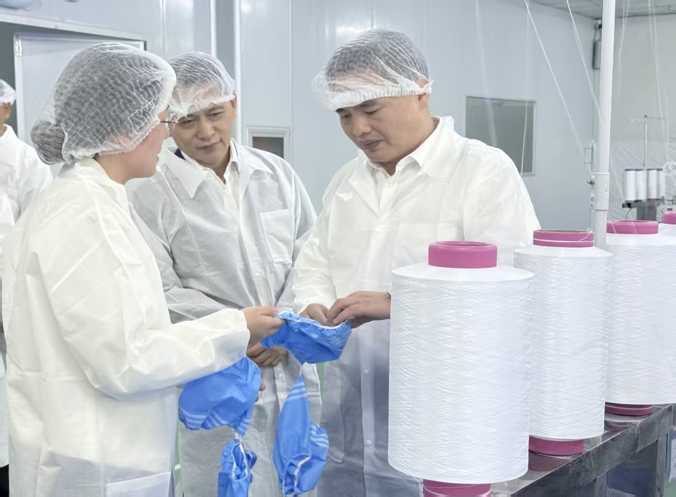 在湖北新鑫无纺布有限公司,冯伟与省侨联常委、省侨联青委会常务副会长潘元静总经理亲切交流,深入一线察看了解生产流程、质量管控和海外市场拓展情况,勉励新鑫积极发挥侨资优势,带动非织造布企业形成产业集群,共同“出海”开拓国际市场。