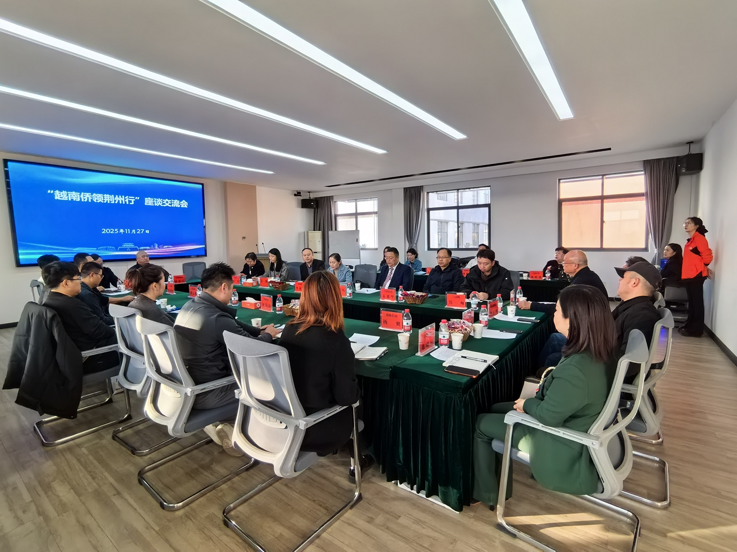 (肖任平)为推进“侨助千企万品出海”工作,助力荆州企业和产品出海,11月27日,市侨联、市委统战部、市商务局联合举办“越南侨领荆州行”活动。越南中国总商会湖北企业联合会会长方新元、执行会长吴波受邀来荆开展投资考察和座谈交流。市侨联党组书记、主席李亚玲出席活动。