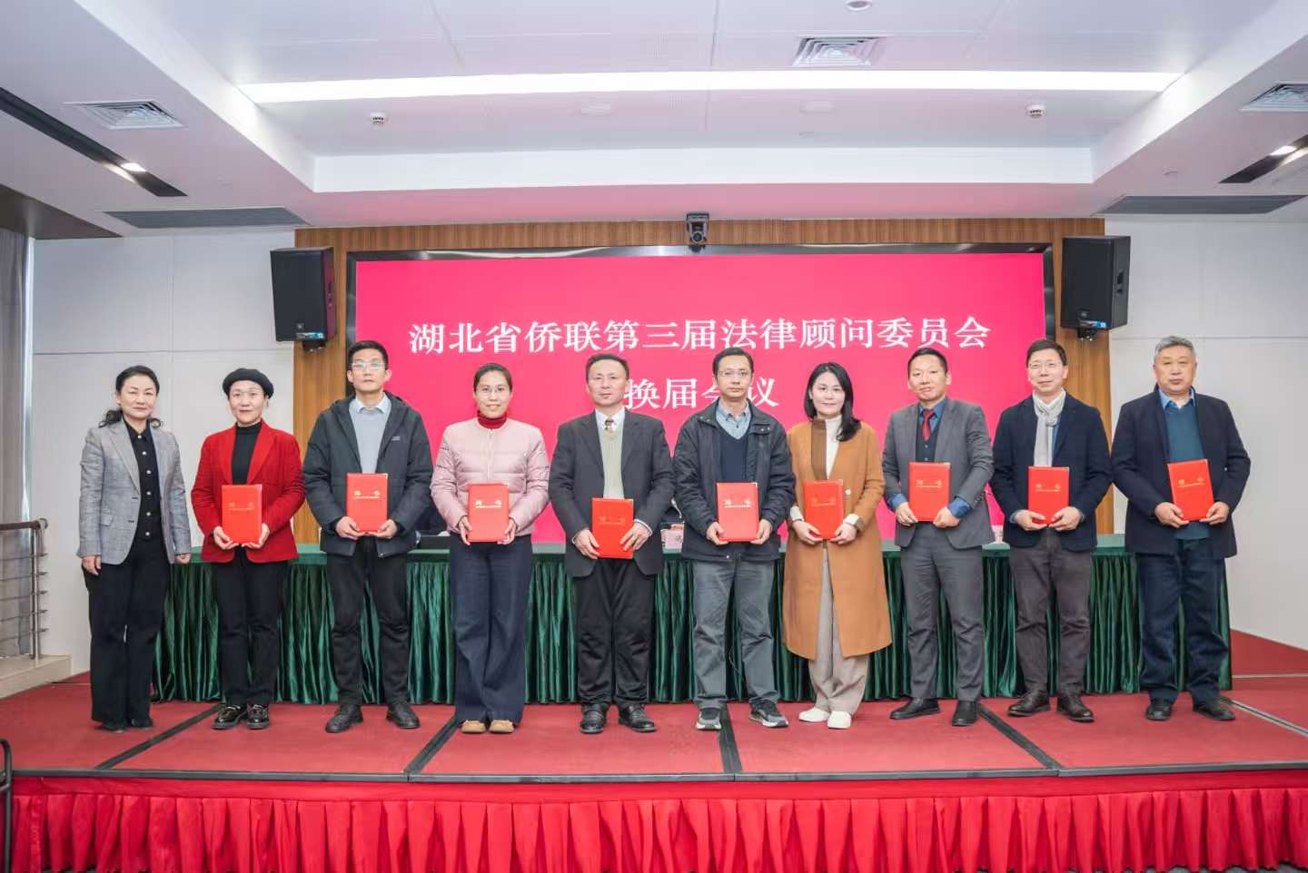 会议审议并通过了《湖北省侨联法律顾问委员会章程》。会议通过了有关人事事项,聘任谢文汉为新一届法顾委主任委员,张沫、邬文俊、邱炜、董强、刘婷婷、张曙光、董文高、陈喻伟、高宏贵、文峻等10人为副主任委员,丁文秀等23人为委员,李峰等4人为海外委员。现场举行了隆重的聘书颁发仪式,冯伟等省侨联领导为新一届法顾委主任、副主任颁发聘书。