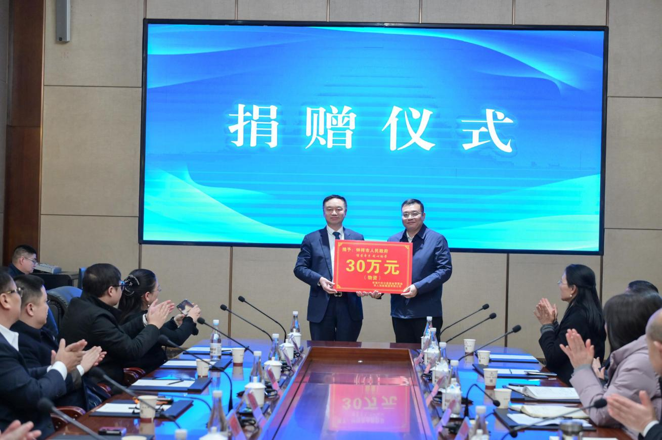 座谈会上,邝远平代表学海行舟公益基金、华人创新集团有限公司向钟祥市政府捐赠“博爱牵手 同心助学”30万元教学物资,涵盖科创无人机教室、人工智能编程教室、音乐教室等六大类项目,助力钟祥教育发展。