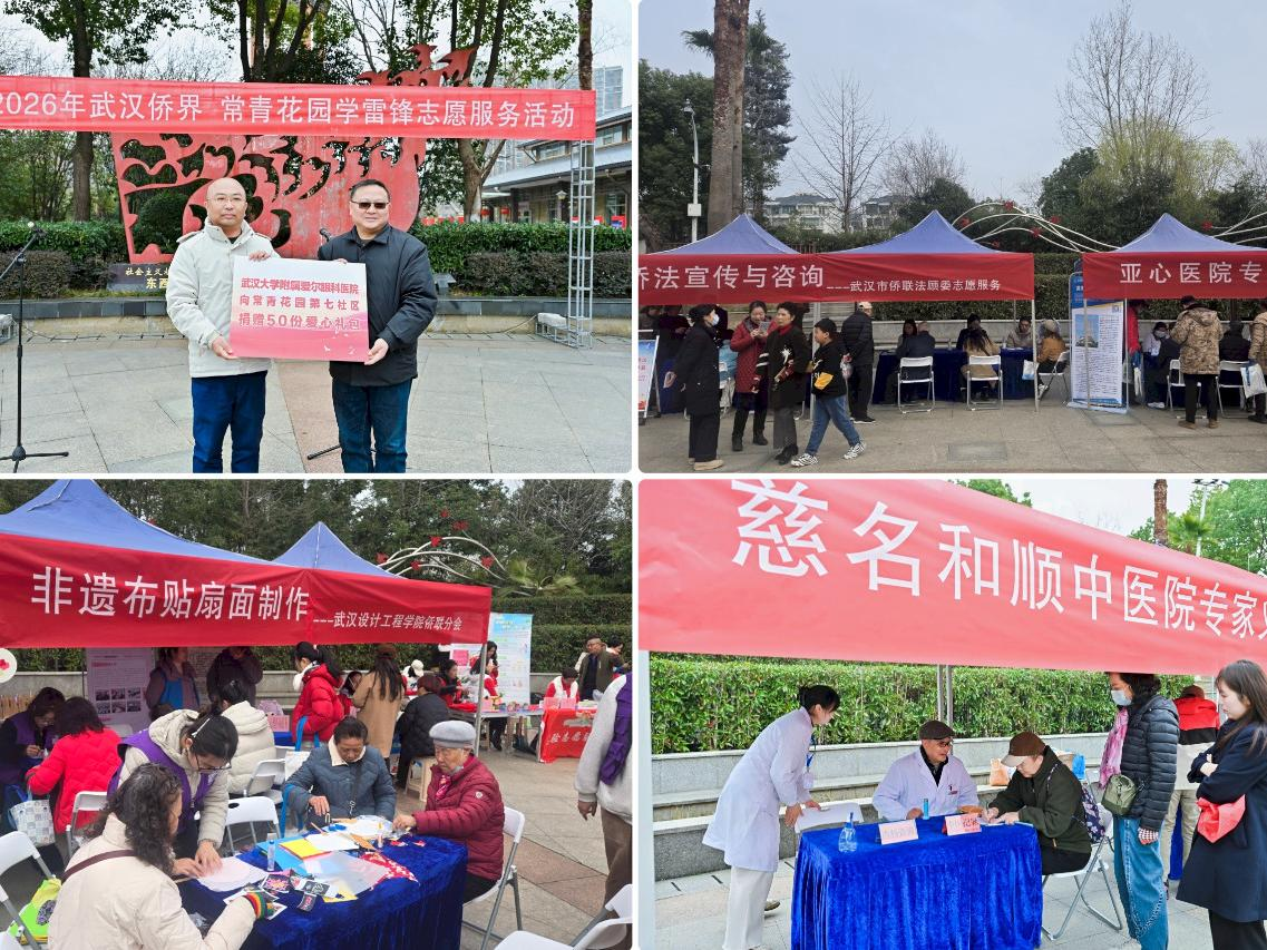 志愿服务活动启动仪式在常青花园社区文艺志愿者的表演中拉开序幕。韩忠翔在致辞中表示,将以此次活动为契机,进一步加强区街联动、侨社共建,持续为归侨侨眷和社区群众办实事、解难事、做好事,不断提升基层服务质效。卢峰号召全市侨界深入学习践行雷锋精神,大力弘扬嘉庚精神,主动投身志愿服务事业,以实际行动展现侨界担当、传递侨界温暖。活动现场设置健康义诊、侨法宣传、反诈科普、义务理发、政策咨询等服务点位,武汉大学附属爱尔眼科医院向常青花园困难群体捐赠50份侨爱心礼包,侨界志愿者发挥专业优势开展热情细致周到的志愿服务,受到社区居民和侨界群众的广泛欢迎。