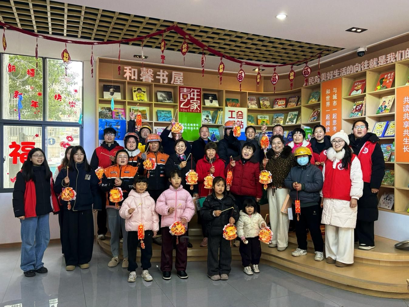 花灯制作区里,大家围坐一堂,在志愿者的指导下巧手创作:折框架、粘灯面、饰流苏,互帮互助间一盏盏精致的手工花灯逐渐成形。制作完成后,全体人员手持花灯合影留念,定格温馨瞬间,也让传统民俗文化在动手实践中得到传承与弘扬。