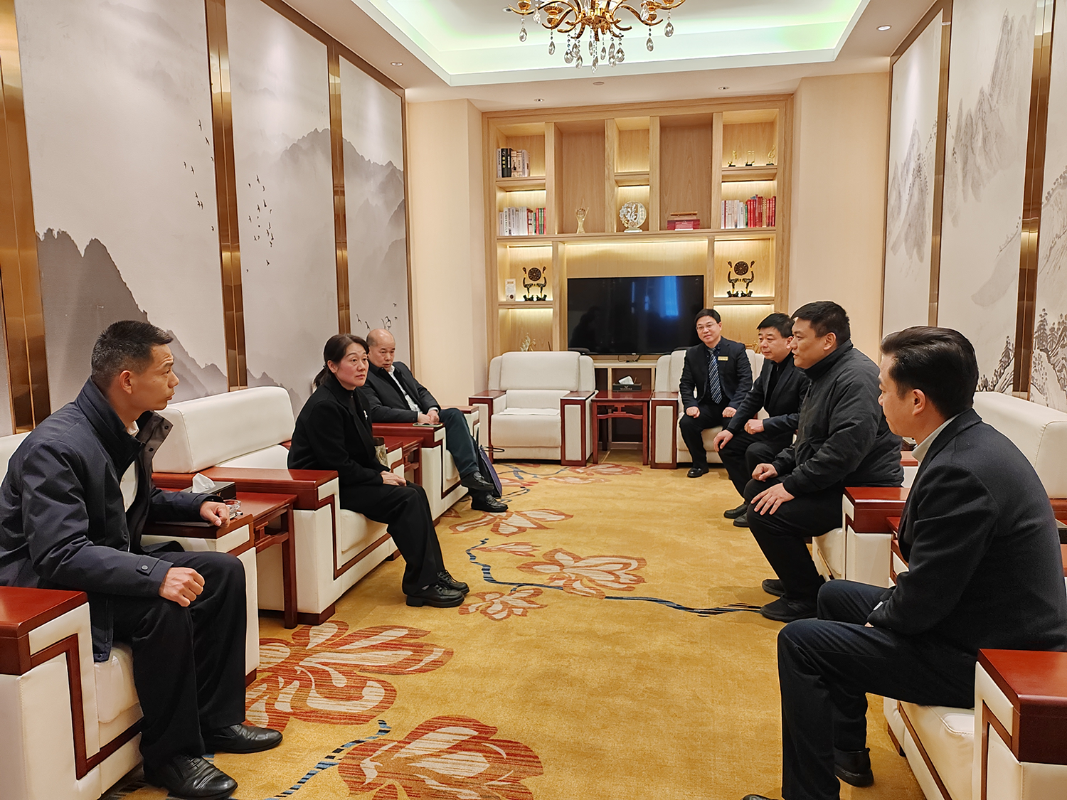 在荆门凯信茂发酒店管理有限公司,市侨联一行与企业负责人座谈交流,详细了解酒店运营管理、客源市场、用工保障、成本管控等情况,认真听取企业在经营发展中遇到的困难与建议,围绕优化服务品质、拓宽客源渠道、提升管理效能等方面与企业进行深入探讨交流。