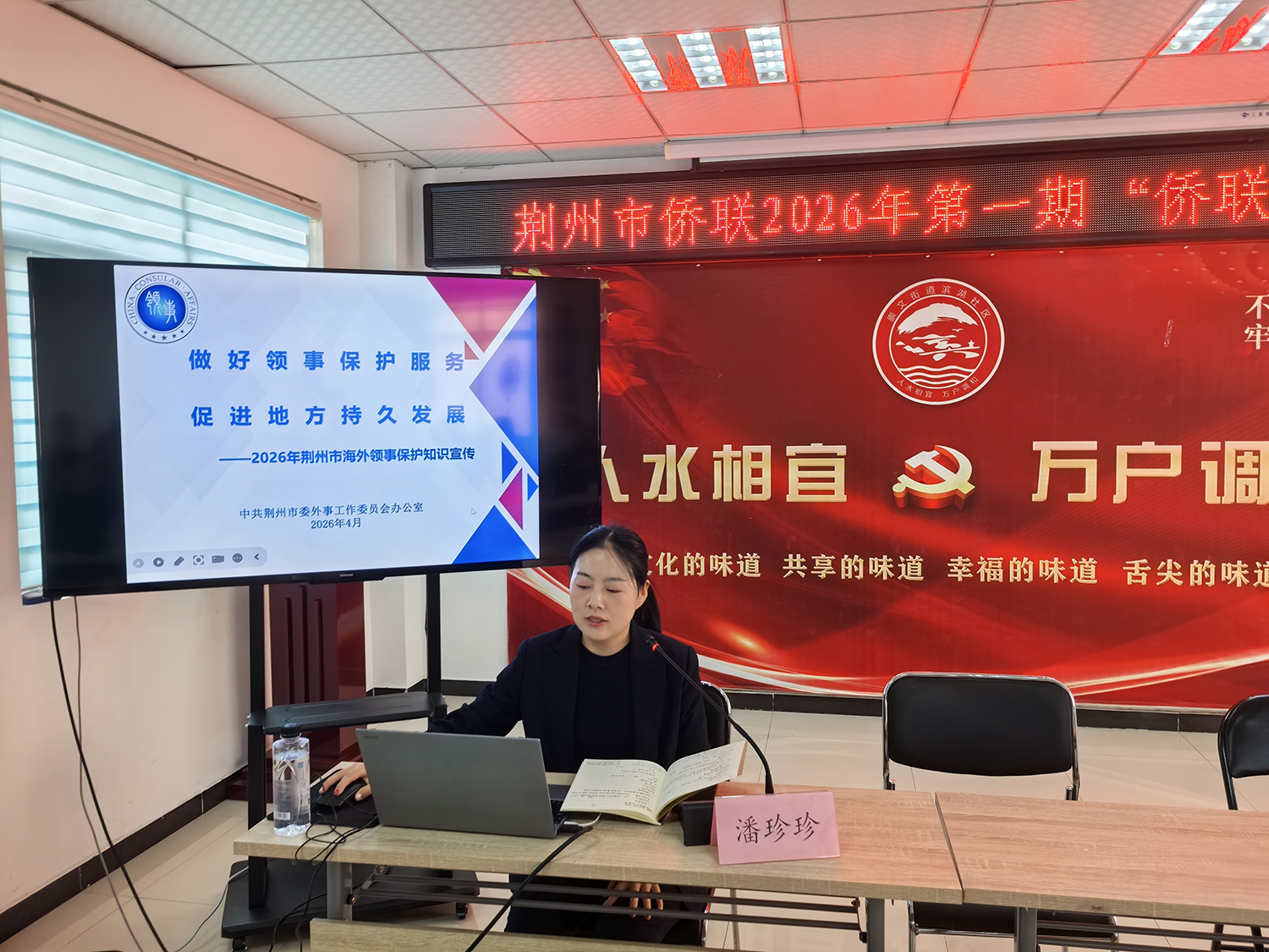(肖任平)为深入学习贯彻习近平总书记关于侨务工作的重要论述,扎实推进树立和践行正确政绩观学习教育,进一步丰富为侨服务形式,4月24日下午,荆州市侨联联合市委外办、市国安局在沙市区崇文街道滨湖社区“侨胞之家”举办2026年第一期“侨联大讲堂”活动。市侨联党组书记、主席李亚玲参加活动。