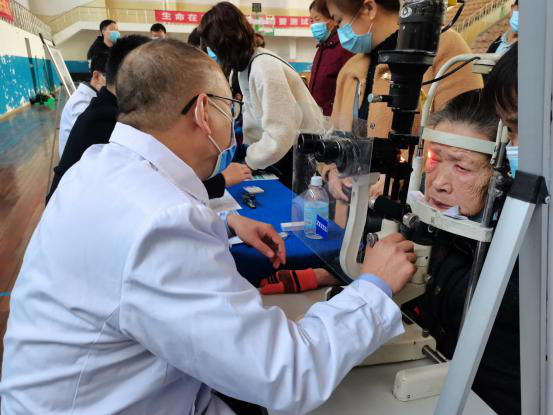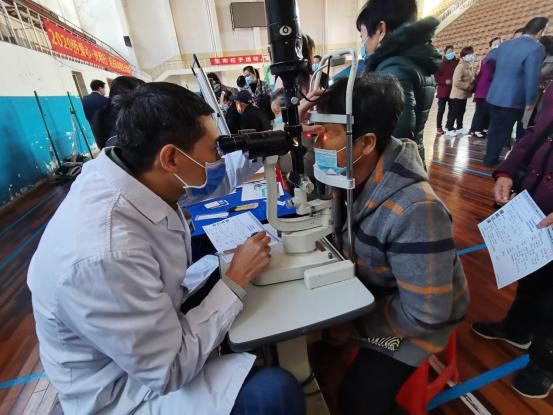 孝感爱尔眼科医院主治熊建河为现场群众用裂隙灯检查眼疾