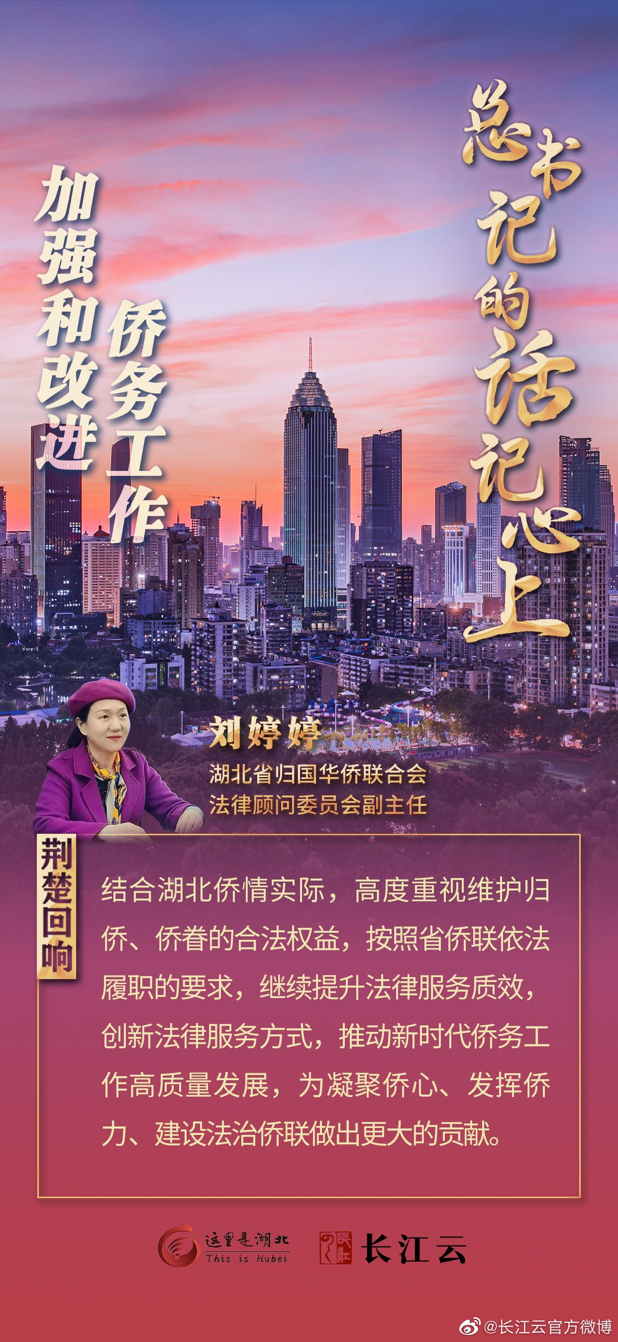 湖北省归国华侨联合会法律顾问委员会副主任刘婷婷:党的二十大报告指出,“加强和改进侨务工作,形成共同致力民族复兴的强大力量。”“要坚持走中国特色社会主义法治道路”“全面推进国家各方面工作法治化”。为深入学习贯彻党的二十大精神,湖北省侨联法顾委将严格遵照法律规定,结合湖北侨情实际,高度重视维护归侨、侨眷的合法权益,按照省侨联依法履职的要求,继续提升法律服务质效,创新法律服务方式,推动新时代侨务工作高质量发展,为凝聚侨心、发挥侨力、建设法治侨联做出更大的贡献。