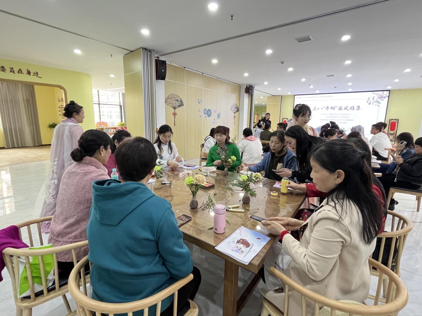 (西陵区平湖馨苑社区侨联 高芸)为弘扬传统文化,展现巾帼之美,丰富侨界女性文化生活,让大家过一个充实愉快、富有意义的节日,3月7日下午,西陵区平湖馨苑社区“侨之家”邀请辖区侨眷妇女代表们齐聚一堂,通过开展净手礼、汉礼讲解及宋韵花艺制作,展示中国的汉服文化、女性之美,共同庆祝属于自己的节日。